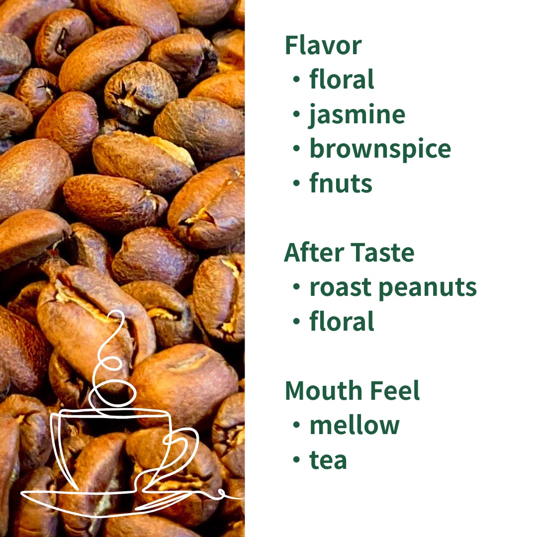 インドネシアといえばスパイス感やしっかりしたコクを連想しますが、こちらのロットはジャスミンのような花の香りと・ほのかなスパイスを感じさせる香味が特徴的です。