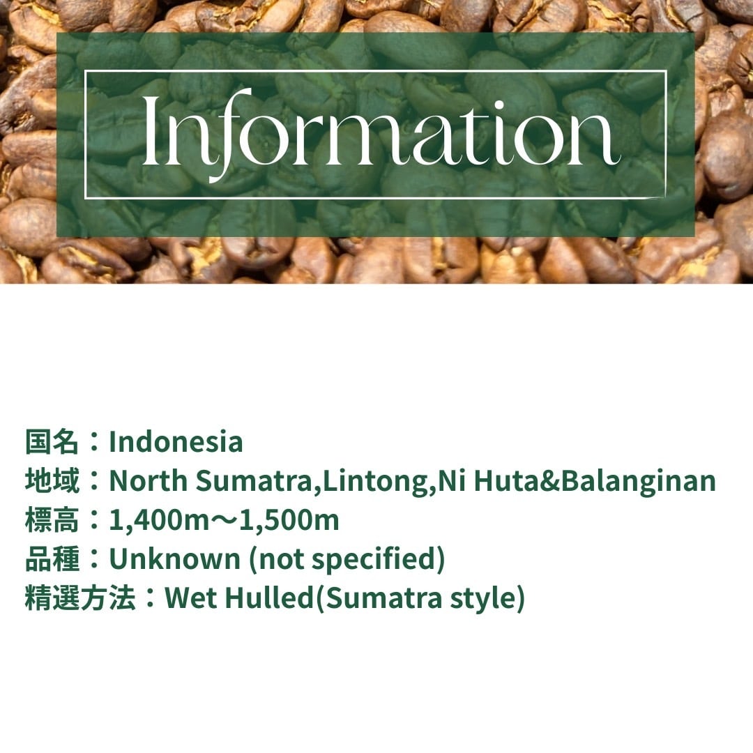 深煎りで感じられる苦さよりも発酵由来の個性的な酸味と甘さを感じることができ「スマトラ式」による独特な風味を存分に楽しんでいただけます。