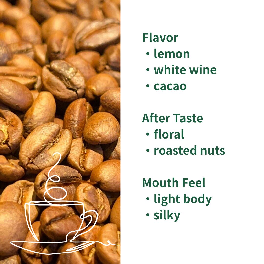 フローラルな香りと明るい酸味が心地よく続き、その後ローストナッツの甘香ばしさとカカオの余韻が穏やかに残ります。