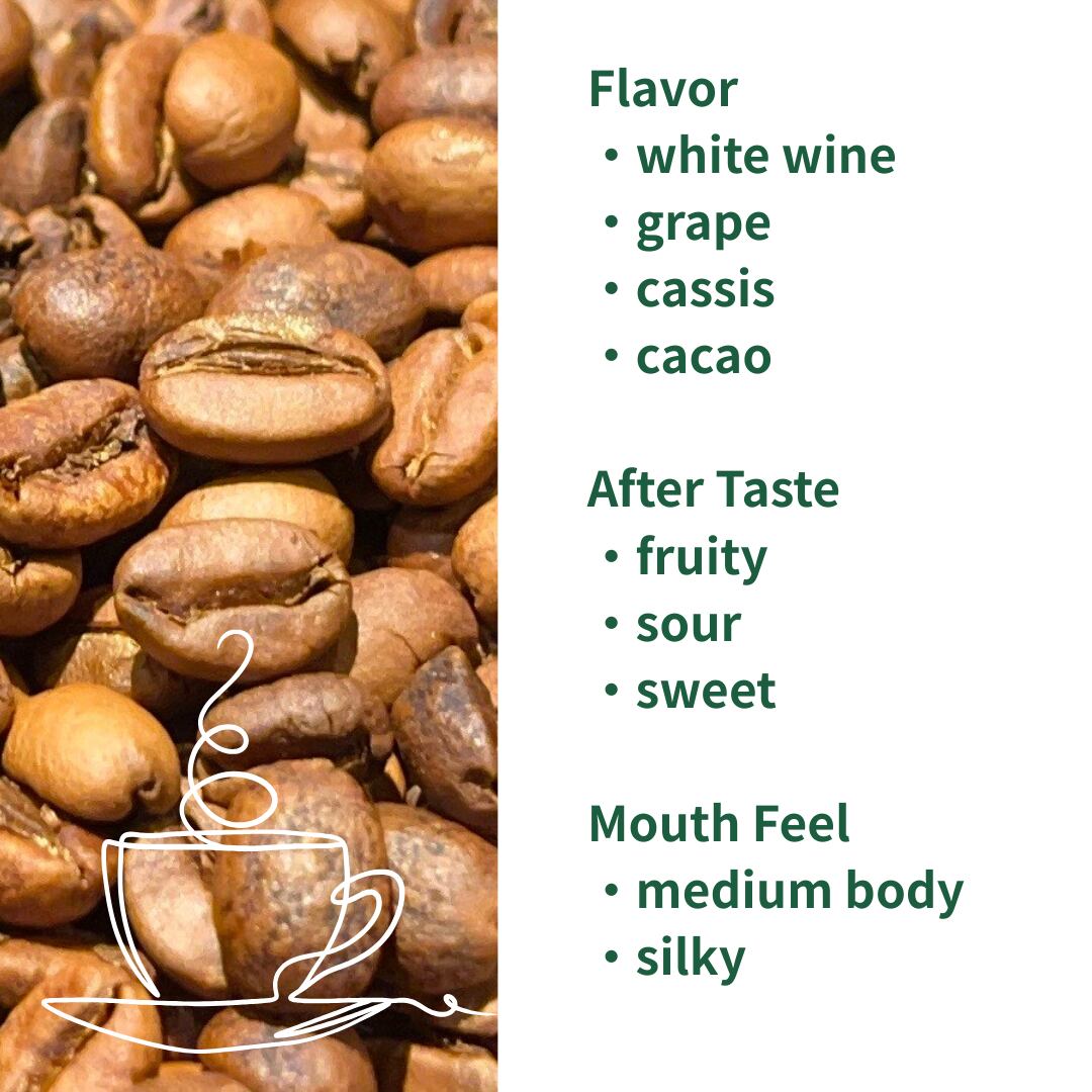 ミディアムボディの赤ワインを思わせる重厚さがありながら、飲み疲れしない発酵系コーヒーの魅力を凝縮したロットです。