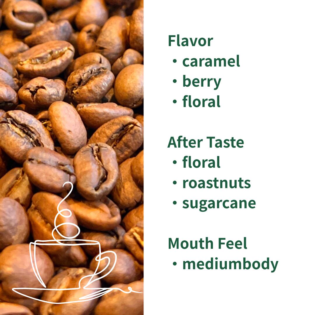 フローラルな香りと軽やかな酸味が心地よく続いた後、ローストナッツの甘い香りと、ブラウンシュガーを思わせるやさしい甘さが余韻として残ります。