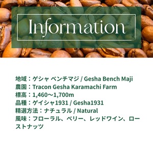 【エチオピア】Gesha Karamachi1931|Natural|Light roast