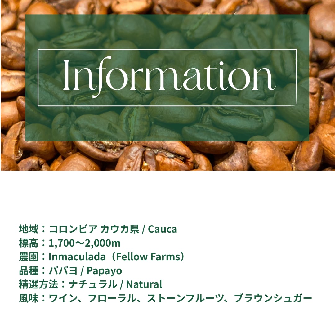 【コロンビア】Inmaculada Papayo Natural│Light roast